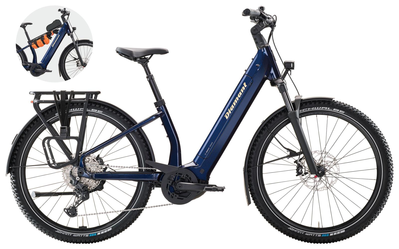 Fahr das Suvea bequem als Tiefeinsteiger oder erg�nze das optionale Accessory Bar, wenn du Schloss, Tasche, Pringles-Dose oder was auch immer einfach erreichbar transportieren m�chtest. Auch das Clever Rack Pro mit Kompatibilti�t f�r MIK SIDE und Ortlieb 3.1 zeigt die Kompetenz des Suvea als Gep�cktr�ger. Integrierte AirTag-Halterung, Kompatibilit�t mit Ringschl�ssern, 160 kg Systemgewicht, super-volumin�se 65 mm-Bereifung... und so fort. Richtig clever ist die 3/4-Orientierung des Akkus: 600 oder 800 Wh tr�gt das ansprechend dynamische Suvea.
