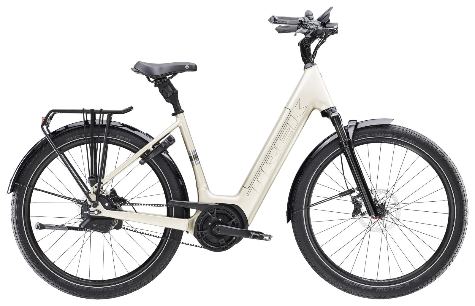 Einen hydrogeformten Aluminiumrahmen mit integriertem Akku und mit einer Federgabel, die dir das Gr�bste erspart. Ein Gates CDX Riemenantrieb mit Enviolo Trekking Automatiq Getriebenabe �bernimmt das Schalten f�r dich, und die Bosch Performance Line Cruise Smart System Antriebseinheit mit 250 W Leistung und 75 Nm Drehmoment unterst�tzt dich bis 25 km/h. Ein Kiox 500 Display mit Bluetooth-Konnektivit�t verbindet sich mit deinem Smartphone, w�hrend die Bosch BCM-Einheit den Diebstahlschutz erh�ht. Die 4-Kolben-Scheibenbremsen bieten zuverl�ssige Bremsleistung und die Beleuchtung und der Gep�cktr�ger garantieren sorgenfreie Pendel