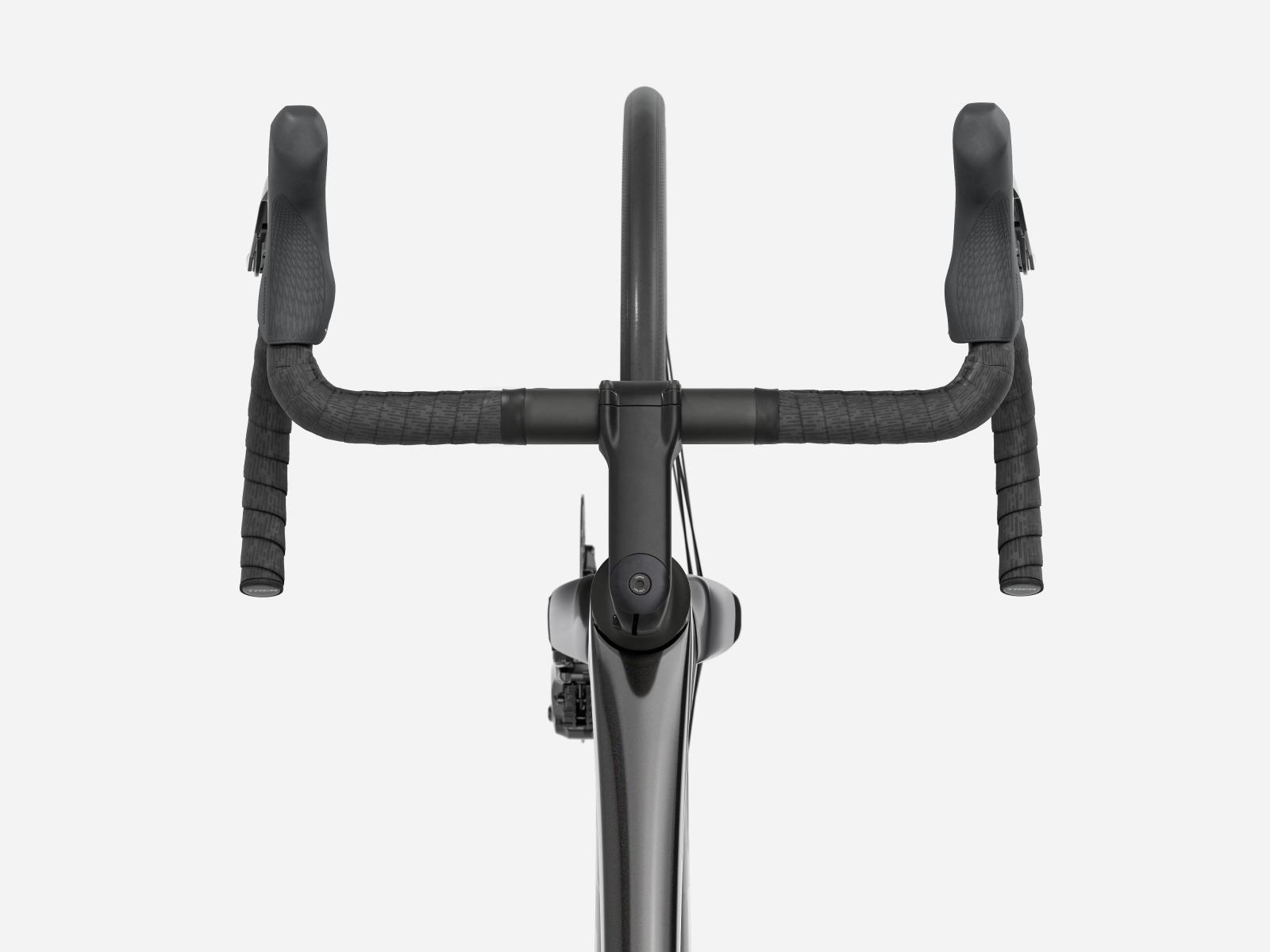 Der im Vergleich zum Unterlenker schmalere Oberlenker des Madone�Gen�8 erm�glicht eine auf Aerodynamik oder Power optimierte Positionierung auf dem Bike. Und dank zweiteiligem Lenker/Vorbau-Design l�sst sich die Passform schnell und einfach anpassen.
