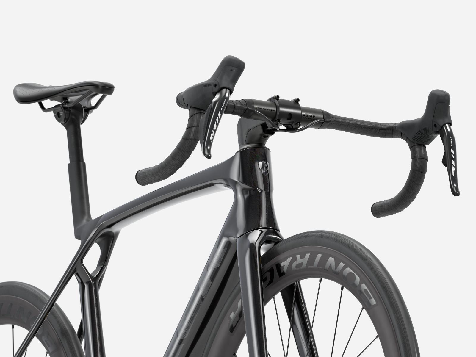 Der im Vergleich zum Unterlenker schmalere Oberlenker des Madone�Gen�8 erm�glicht eine auf Aerodynamik oder Power optimierte Positionierung auf dem Bike. Und dank zweiteiligem Lenker/Vorbau-Design l�sst sich die Passform schnell und einfach anpassen.