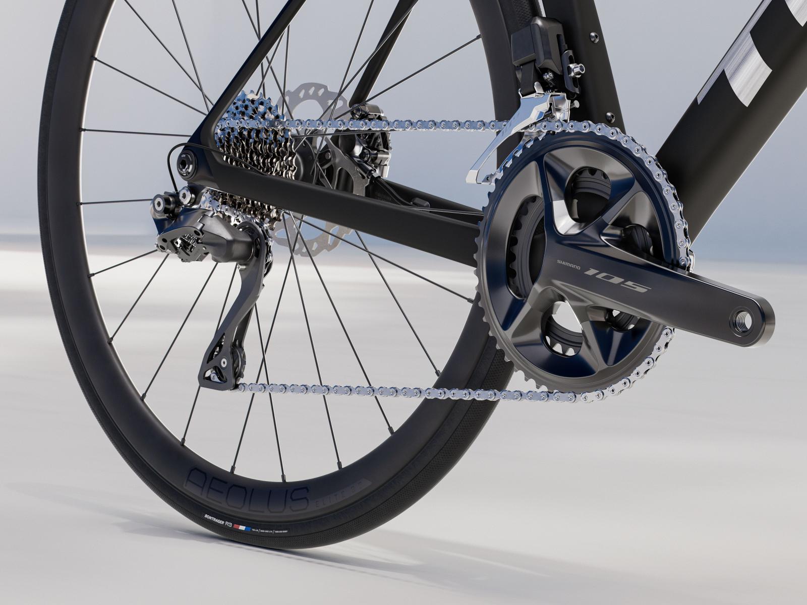 Einen ultraleichten Rahmen aus 500 Series OCLV Carbon mit aerodynamischem Profil und innovativer IsoFlow-Komforttechnologie. Eine pr�zise elektronische Shimano 105 Di2 2x12-Schaltung mit Technologien aus h�her angesiedelten Gruppen und schlauchlose Bontrager Aeolus Elite 35 Carbonlaufr�der.