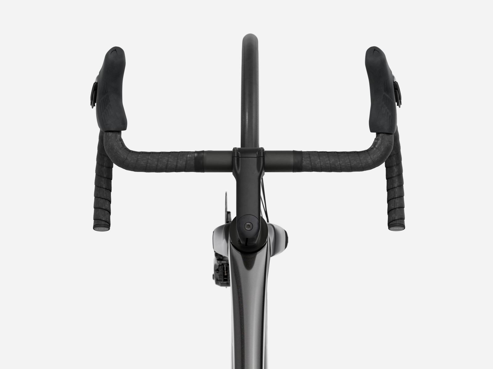 Der im Vergleich zum Unterlenker schmalere Oberlenker des Madone�Gen�8 erm�glicht eine auf Aerodynamik oder Power optimierte Positionierung auf dem Bike. Und dank zweiteiligem Lenker/Vorbau-Design l�sst sich die Passform schnell und einfach anpassen.
