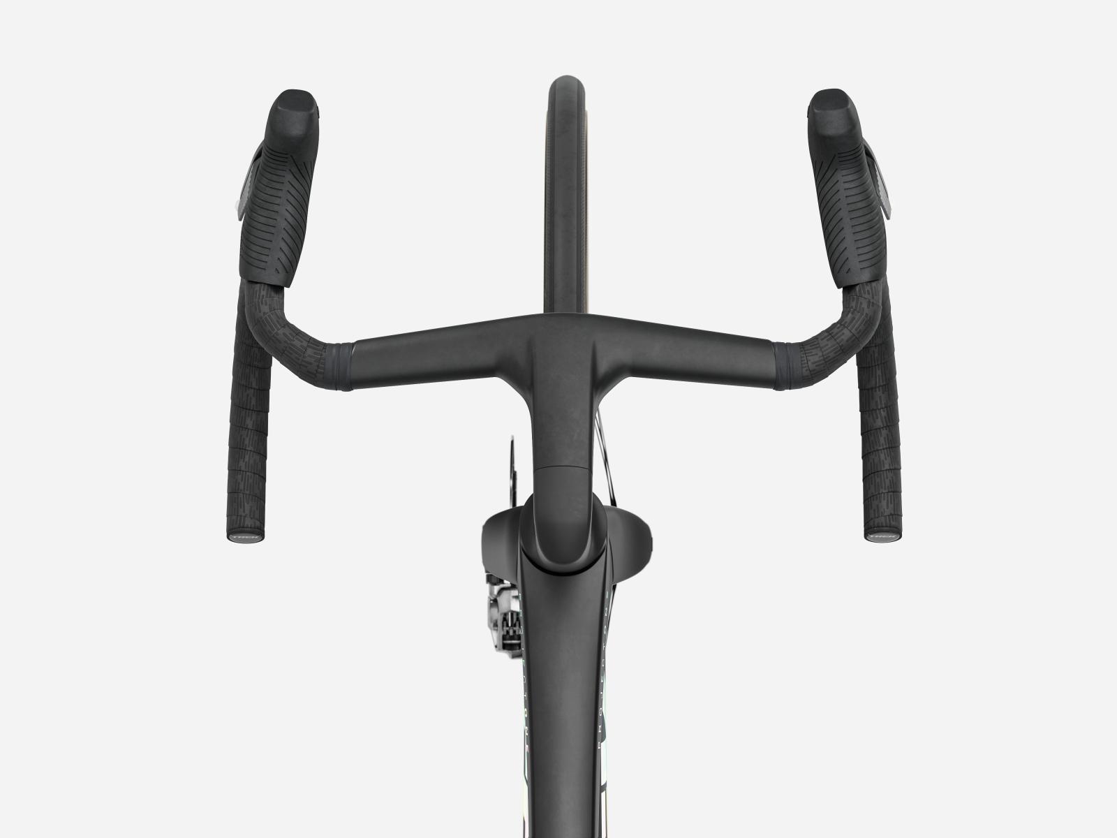 Lenker: Trek Aero RSL Road integrierte Lenker/Vorbau-Einheit, OCLV Carbon, Race�Fit, 80�mm Reach, 124�mm Drop, 35�cm Oberlenkerbreite, 38�cm Unterlenkerbreite, 80�mm Vorbaul�nge